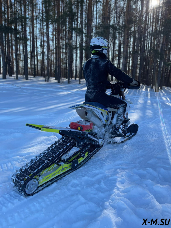 Folk 120 от Snowbike — универсальный гусеничный комплект для внедорожных мотоциклов. Гусеничный мотоцикл (СНОУБАЙК) это, по сути, одноколейный снегоход. Вы получаете возможность продлить мото сезон и эксплуатировать мотоцикл не только летом но и зимой.